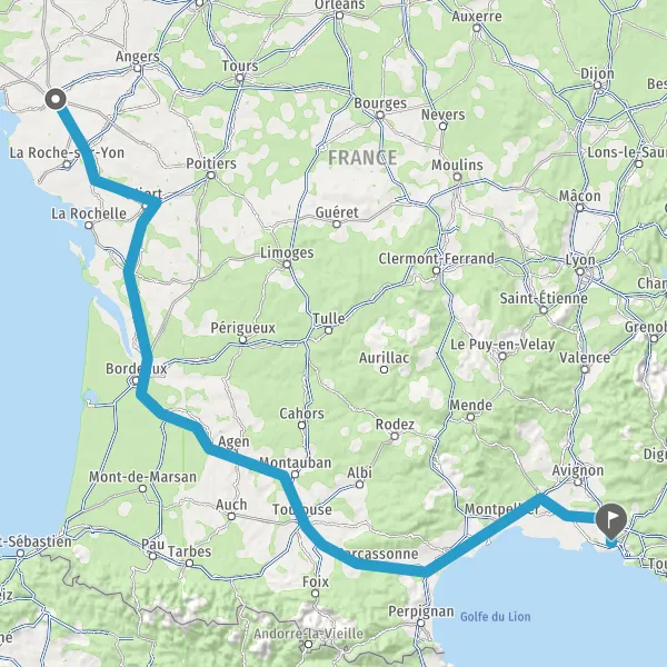 Au rond-point, prendre la 2ème sortie sur Boulevard de Vendée et continuer sur 151 kilomètres
