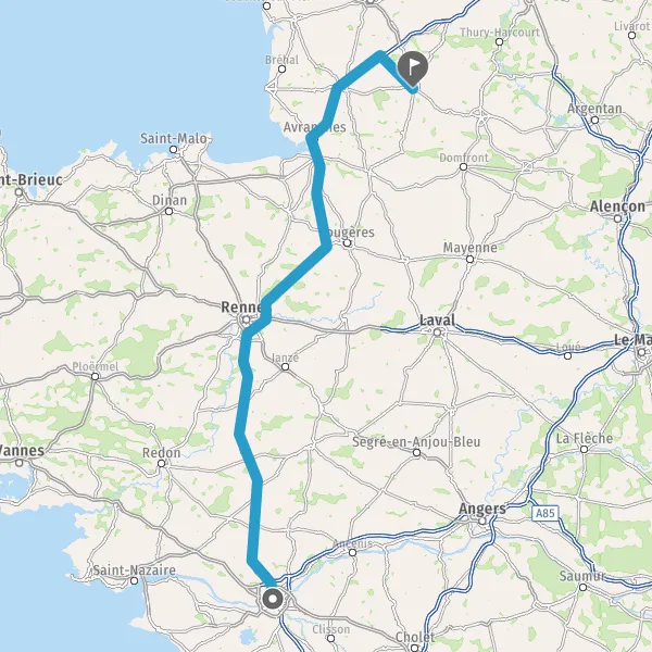 Prendre à droite et rejoindre A84 E3. Continuer sur 113 kilomètres