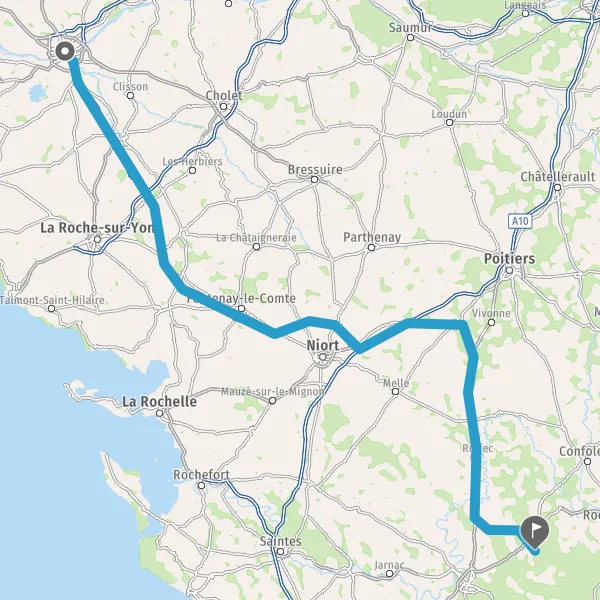 Au rond-point, prendre la 2ème sortie sur Boulevard de Vendée et continuer sur 151 kilomètres