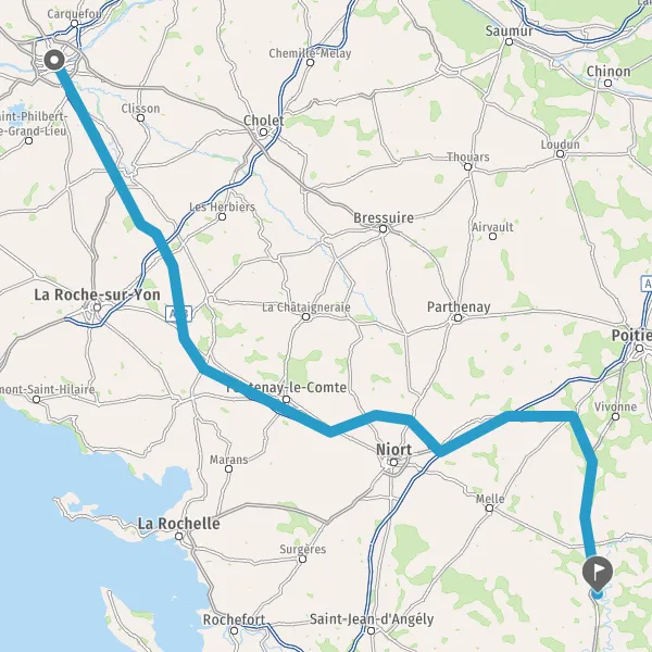 Au rond-point, prendre la 2ème sortie sur Boulevard de Vendée et continuer sur 151 kilomètres