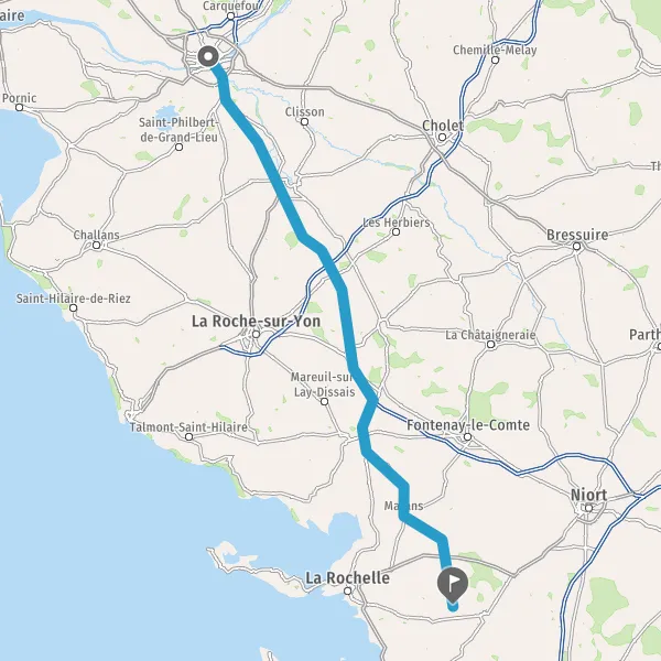 Au rond-point, prendre la 2ème sortie sur Boulevard de Vendée et continuer sur 82 kilomètres