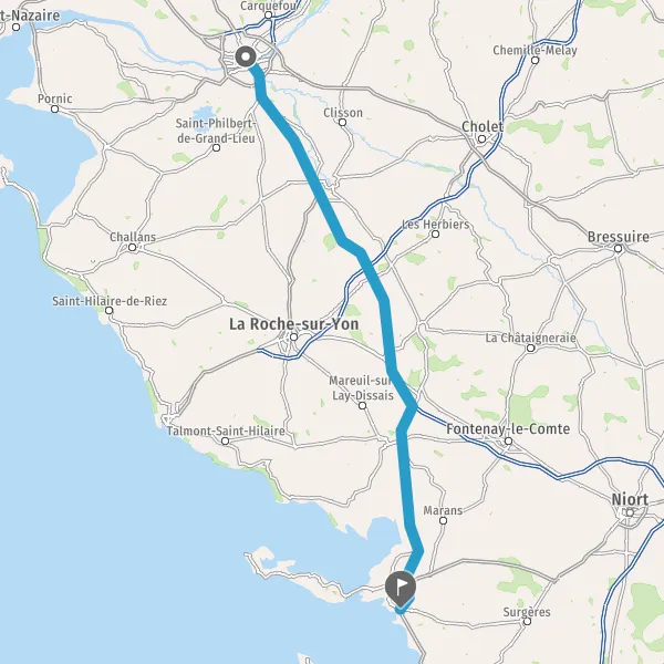 Au rond-point, prendre la 2ème sortie sur Boulevard de Vendée et continuer sur 82 kilomètres