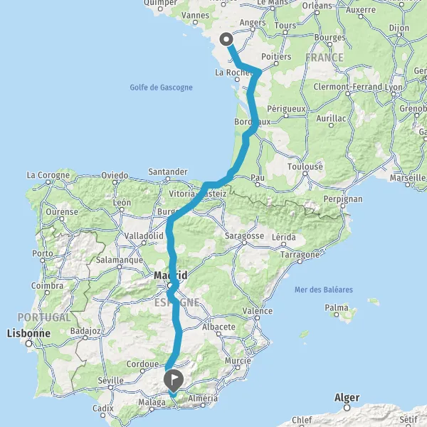 Prendre à droite et rejoindre A63. Continuer sur 205 kilomètres