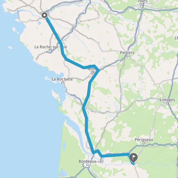 Au rond-point, prendre la 2ème sortie sur Boulevard de Vendée et continuer sur 151 kilomètres