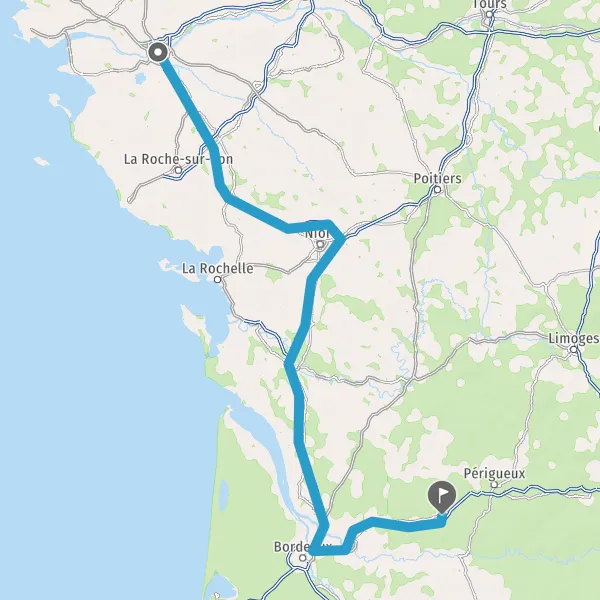 Au rond-point, prendre la 2ème sortie sur Boulevard de Vendée et continuer sur 151 kilomètres