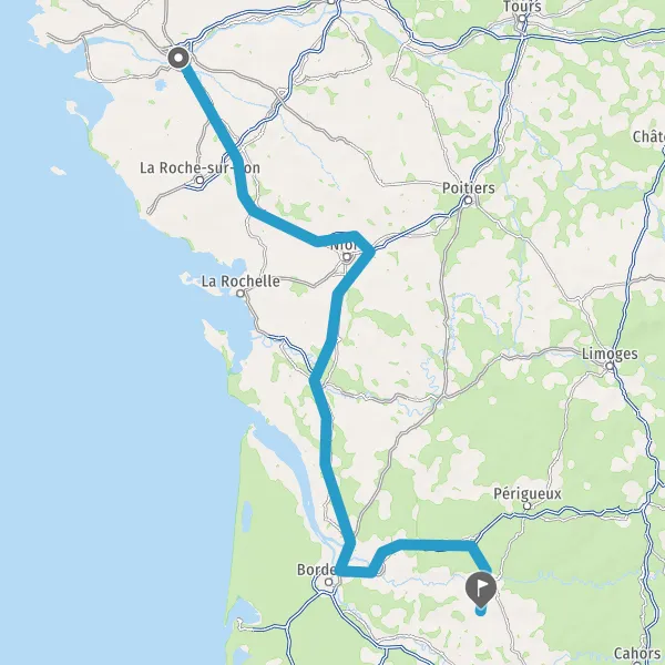 Au rond-point, prendre la 2ème sortie sur Boulevard de Vendée et continuer sur 151 kilomètres