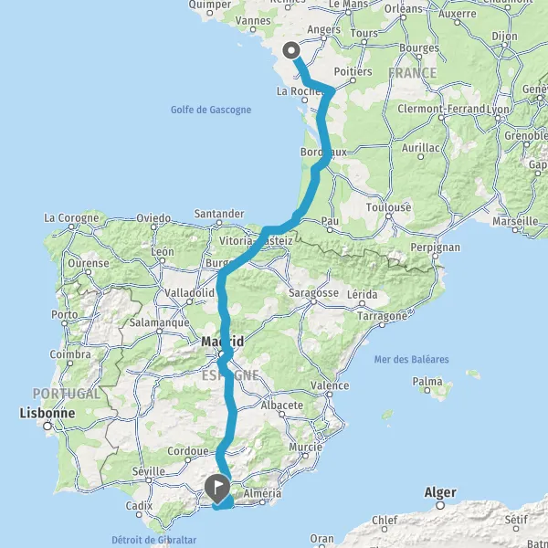 Prendre à droite et rejoindre A63. Continuer sur 205 kilomètres