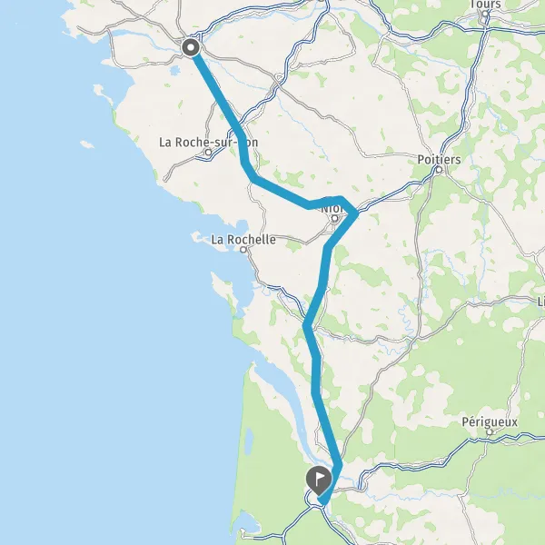Au rond-point, prendre la 2ème sortie sur Boulevard de Vendée et continuer sur 151 kilomètres