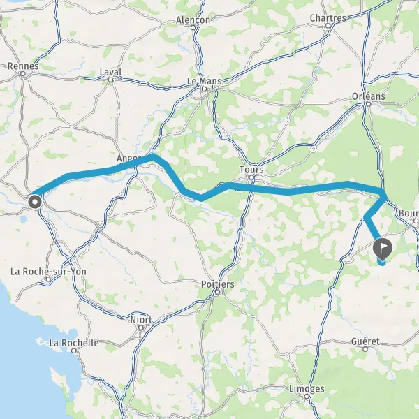 Prendre à droite et rejoindre A85 E60. Continuer sur 125 kilomètres