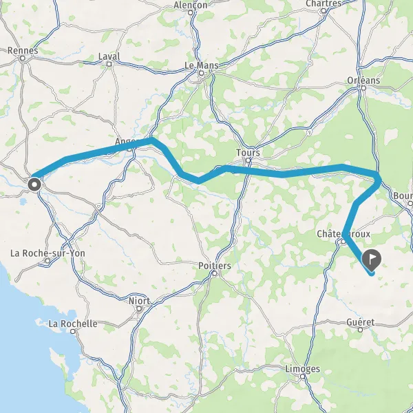 Prendre à droite et rejoindre A85. Continuer sur 205 kilomètres