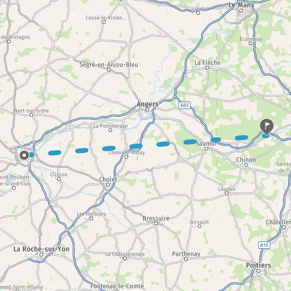 Prendre à droite et rejoindre A85. Continuer sur 80 kilomètres