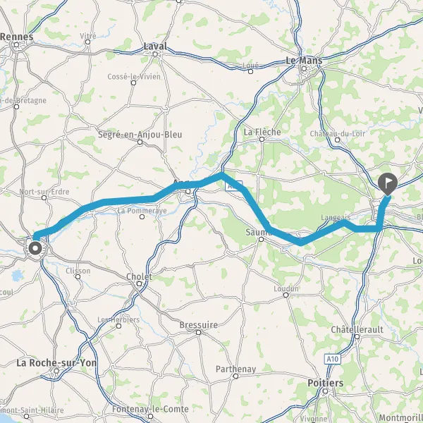 Prendre à droite et rejoindre A85. Continuer sur 99 kilomètres