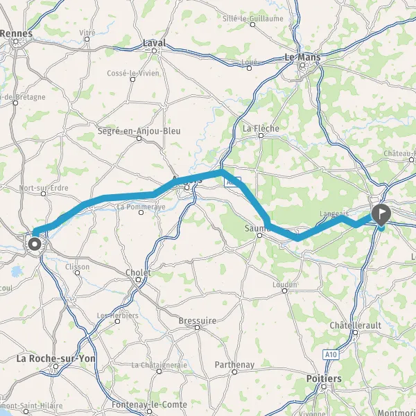 Prendre à droite et rejoindre A85. Continuer sur 90 kilomètres