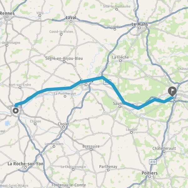 Prendre à droite et rejoindre A85. Continuer sur 90 kilomètres