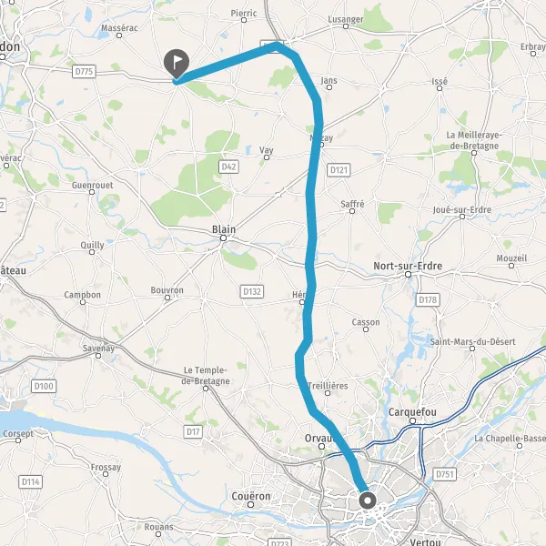 Au rond-point, prendre la 2ème sortie sur D775 (Rue de Châteaubriant) et continuer sur 55 mètres