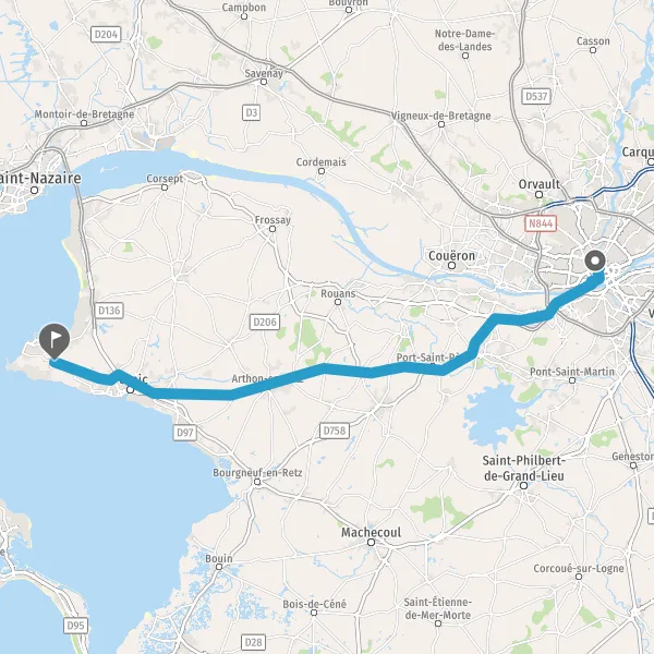 Prendre à droite et rejoindre D723 (Route de Pornic). Continuer sur 1,1 kilomètre