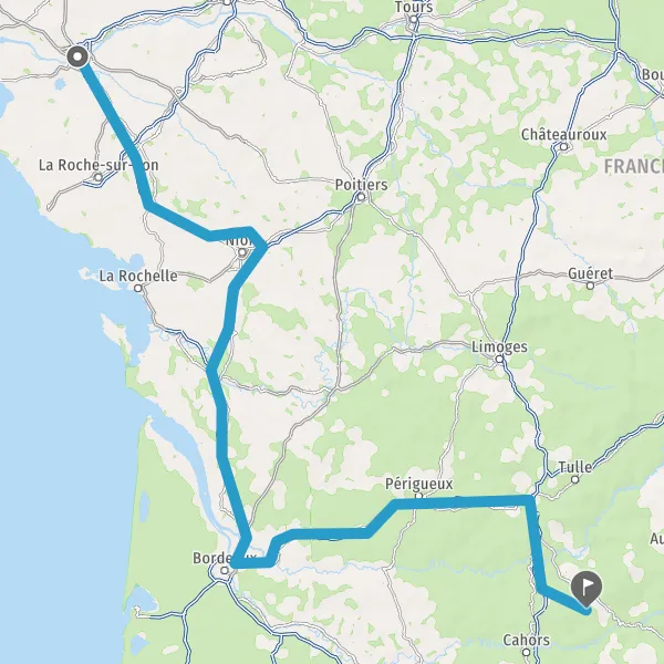 Au rond-point, prendre la 2ème sortie sur Boulevard de Vendée et continuer sur 151 kilomètres