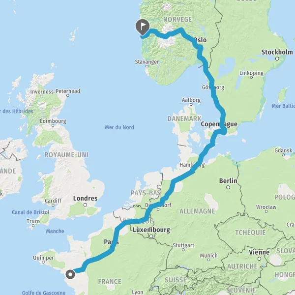 Au rond-point, prendre la 3ème sortie sur E39 (Steinestøvegen) et continuer sur 13 kilomètres