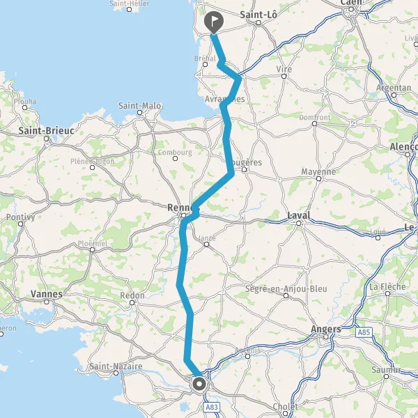 Prendre à droite et rejoindre A84 E3. Continuer sur 73 kilomètres
