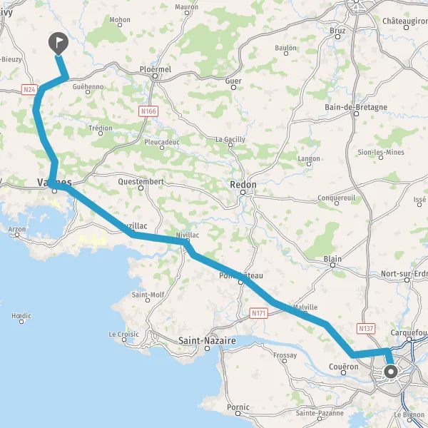 Prendre à droite et rejoindre N165 E60 (N165). Continuer sur 28 kilomètres
