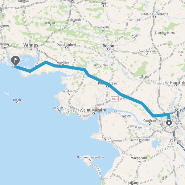 Au rond-point, prendre la 2ème sortie sur D20 (Route de Sarzeau) et continuer sur 1,9 kilomètre