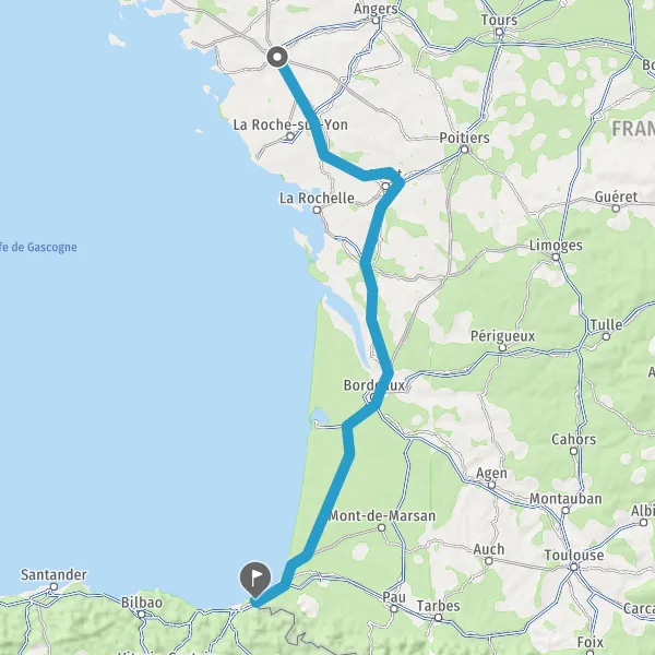 Prendre à droite et rejoindre A63. Continuer sur 205 kilomètres