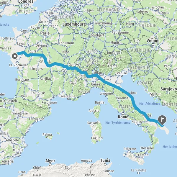 Prendre à droite et rejoindre Strada 16 Strada 16 Strada 16 Strada 16 SS16 SS16 SS16 SS16 E55 (Tangenziale di Bari). Continuer sur 14 kilomètres