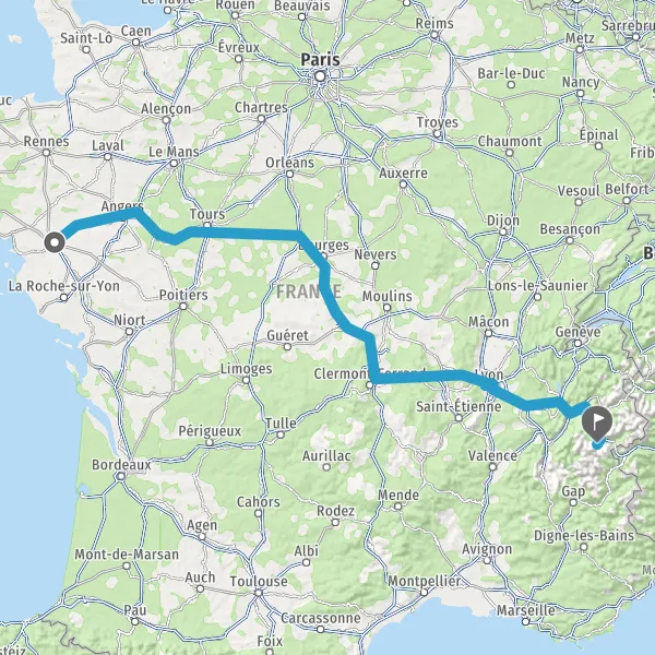Prendre à droite et rejoindre A85. Continuer sur 205 kilomètres