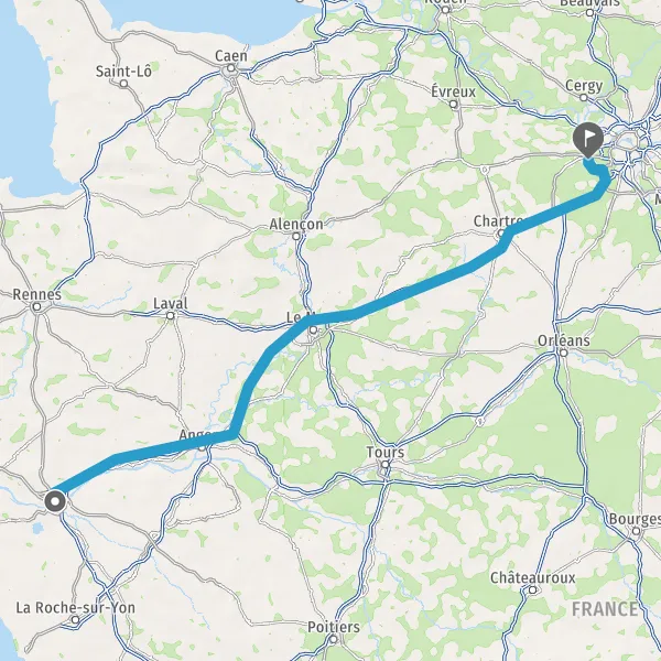 Prendre à droite et rejoindre A11. Continuer sur 315 kilomètres