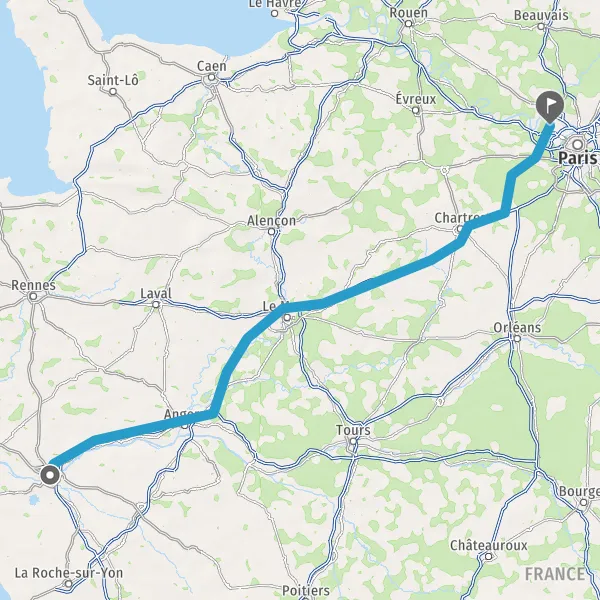 Prendre à droite et rejoindre A11. Continuer sur 315 kilomètres