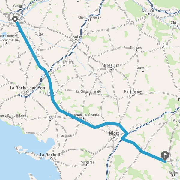 Au rond-point, prendre la 2ème sortie sur Boulevard de Vendée et continuer sur 151 kilomètres