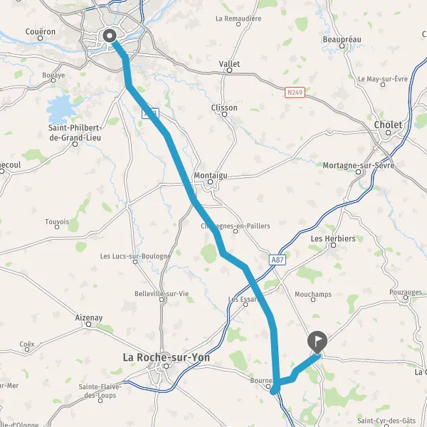 Au rond-point, prendre la 2ème sortie sur Boulevard de Vendée et continuer sur 70 kilomètres
