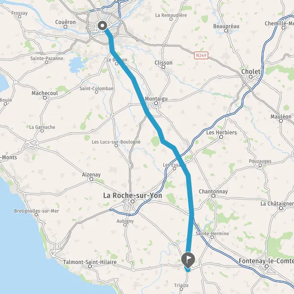 Au rond-point, prendre la 2ème sortie sur Boulevard de Vendée et continuer sur 70 kilomètres