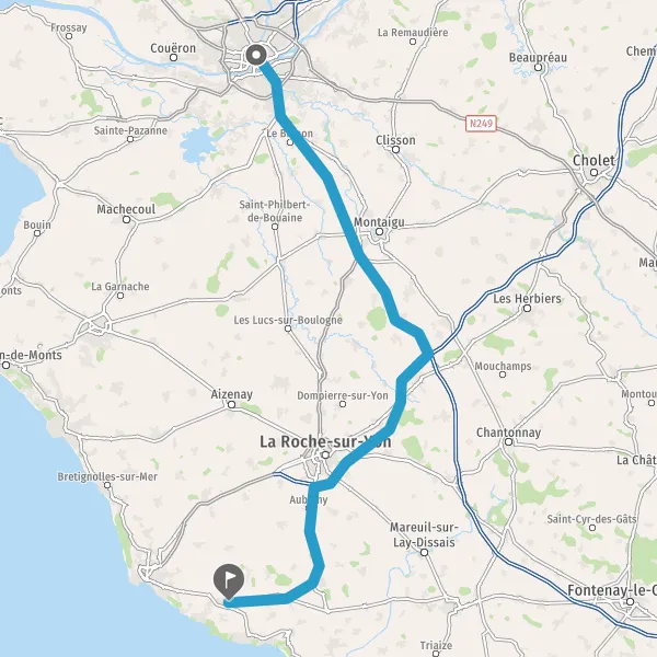 Au rond-point, prendre la 2ème sortie sur Boulevard de Vendée et continuer sur 49 kilomètres