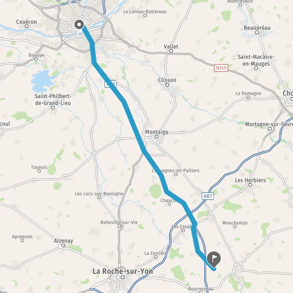 Au rond-point, prendre la 2ème sortie sur Boulevard de Vendée et continuer sur 51 kilomètres