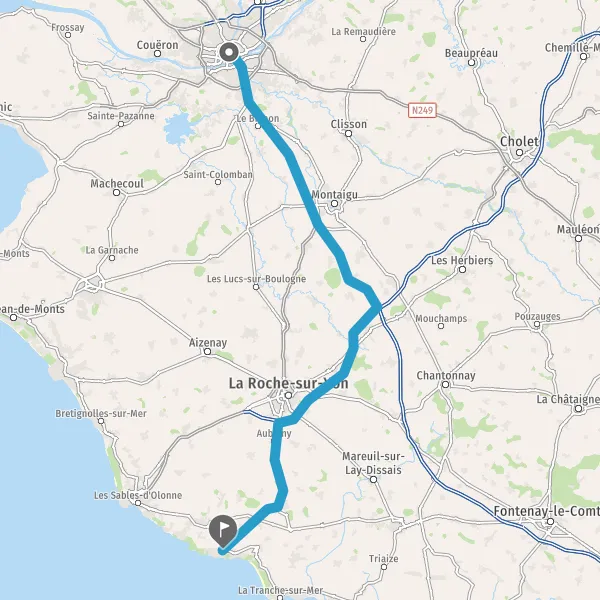 Au rond-point, prendre la 2ème sortie sur Boulevard de Vendée et continuer sur 49 kilomètres