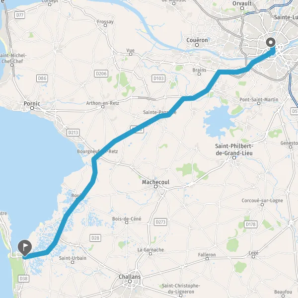 Prendre à droite et rejoindre D723 (Route de Pornic). Continuer sur 1,1 kilomètre