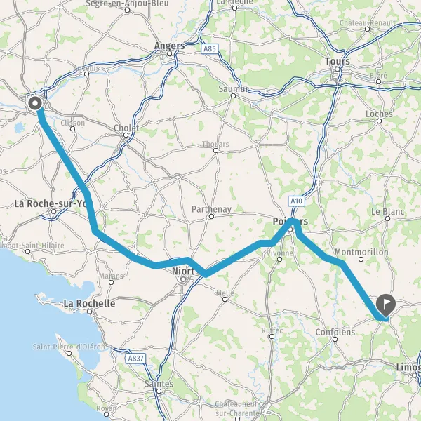 Au rond-point, prendre la 2ème sortie sur Boulevard de Vendée et continuer sur 151 kilomètres