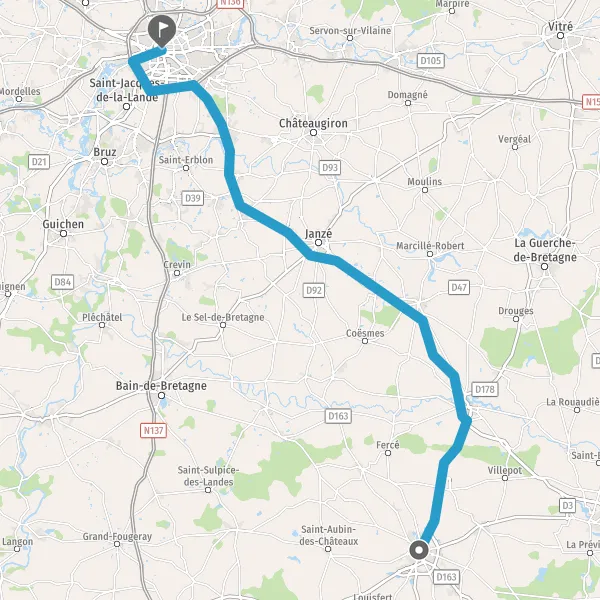 Au rond-point, prendre la 1ère sortie sur D173 (Rue de Vern) et continuer sur 400 mètres