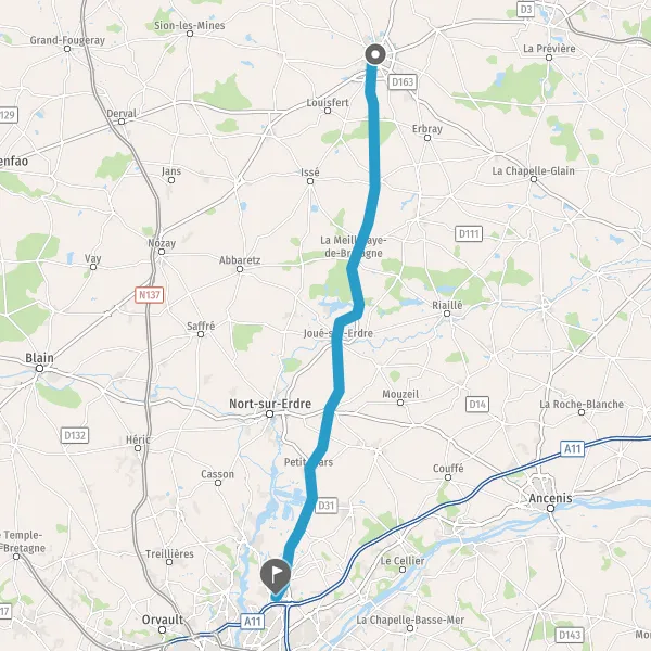 Tourner à gauche sur D33 D24 (Rue de l'Erdre) et continuer sur 150 mètres