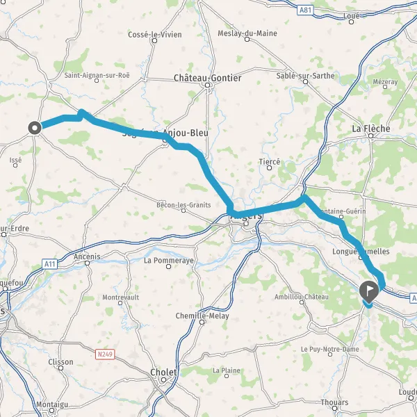 Prendre à droite et rejoindre A11 E60. Continuer sur 23 kilomètres