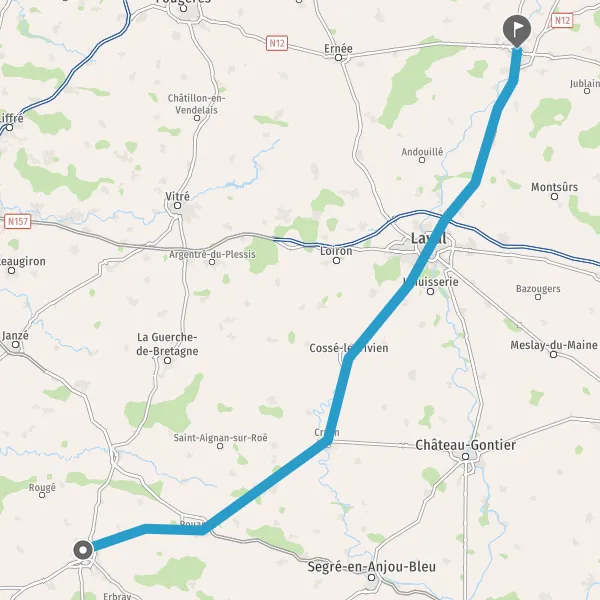 Au rond-point, prendre la 2ème sortie sur Route de Craon et continuer sur 750 mètres