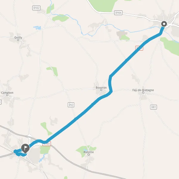 Au rond-point, prendre la 1ère sortie sur N171 (Route de Bouvron) et continuer sur 1,1 kilomètre