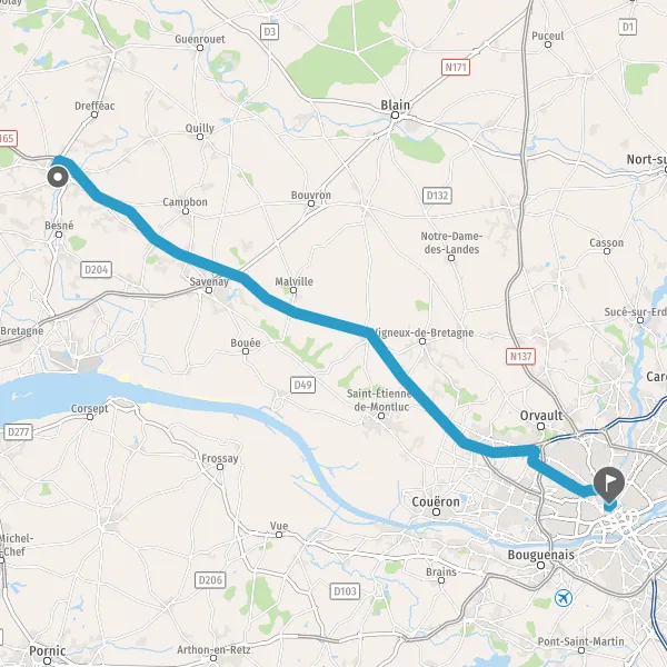 Au rond-point, prendre la 2ème sortie sur D17 (Route de Savenay) et continuer sur 160 mètres