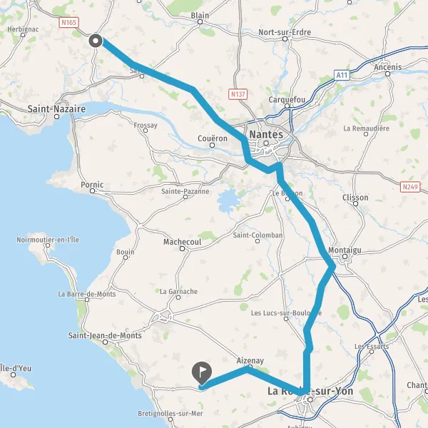 Prendre à droite et rejoindre N165 E60 (N165). Continuer sur 39 kilomètres
