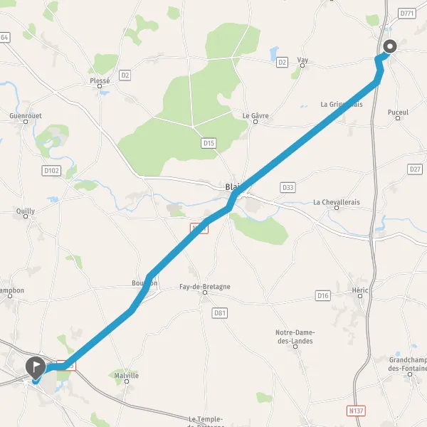 Au rond-point, prendre la 1ère sortie sur N171 (Route de Bouvron) et continuer sur 1,1 kilomètre