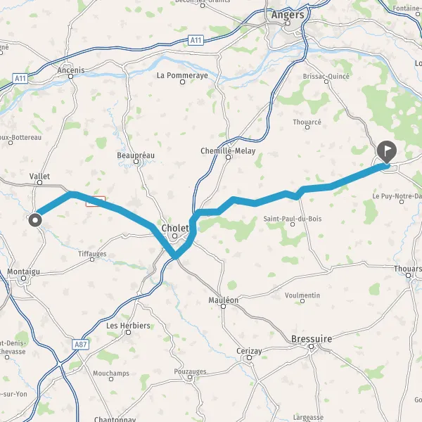 Au rond-point, prendre la 1ère sortie sur Rue de Cholet et continuer sur 750 mètres