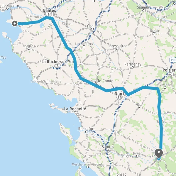 Prendre à droite et rejoindre A83. Continuer sur 150 kilomètres