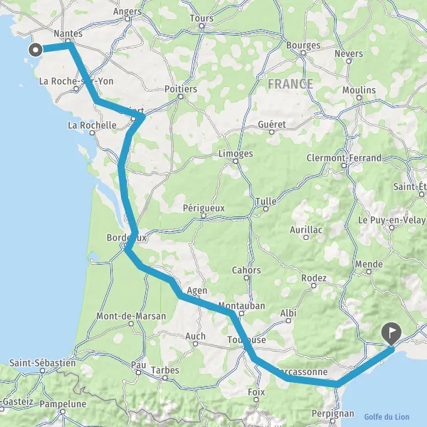 Prendre à droite et rejoindre A83. Continuer sur 150 kilomètres
