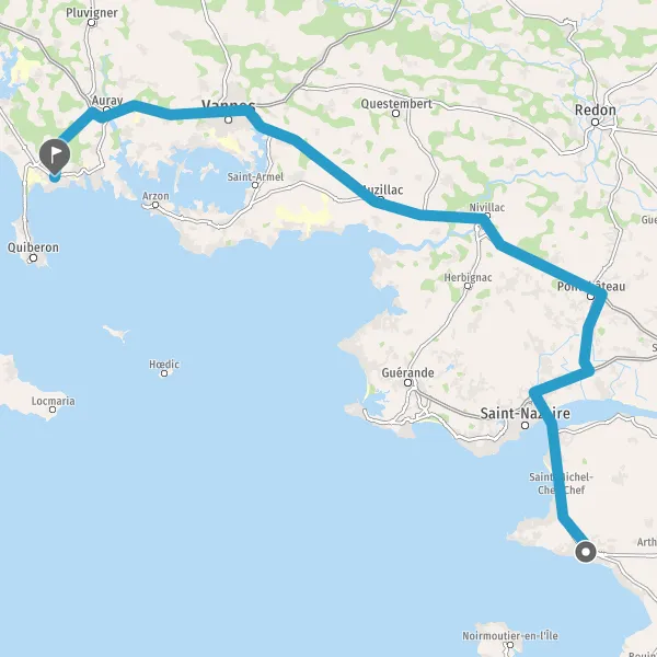 Au rond-point, prendre la 4ème sortie sur D768 (Route de Quiberon) et continuer sur 800 mètres